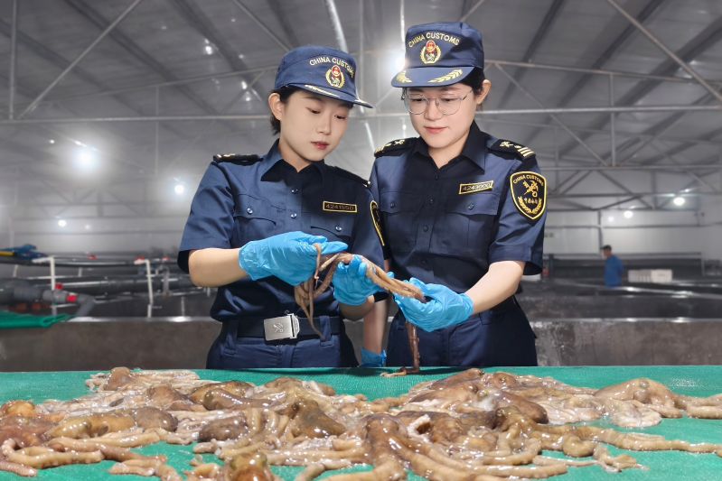 活章魚這類水生動物屬于鮮活易腐農(nóng)食產(chǎn)品,極易在路途運輸中產(chǎn)生損耗,為了確保到達目的國市場時的鮮活性,通關(guān)查驗需要爭分奪秒,這對海關(guān)查驗提出了更高要求。