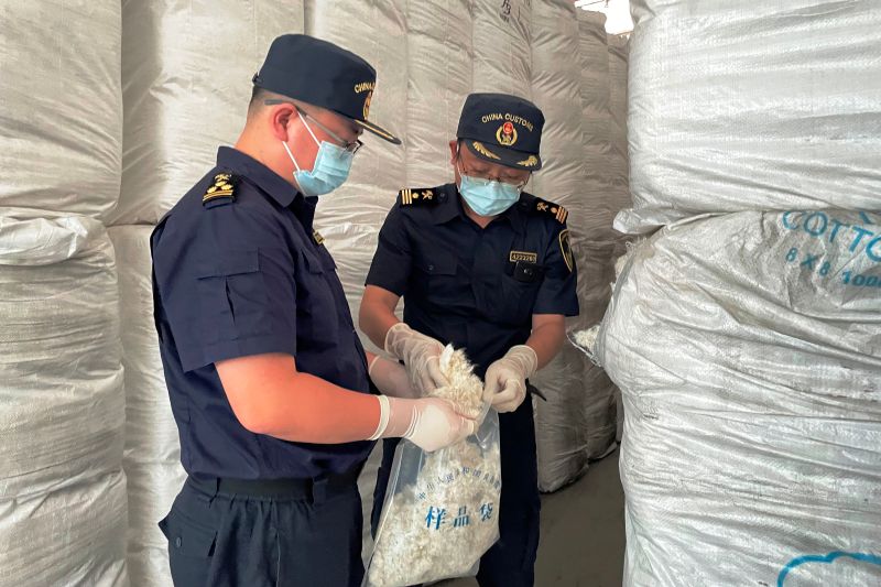 近日,黃島海關(guān)查獲一批禁止進口的洋垃圾棉花,共計220余噸。